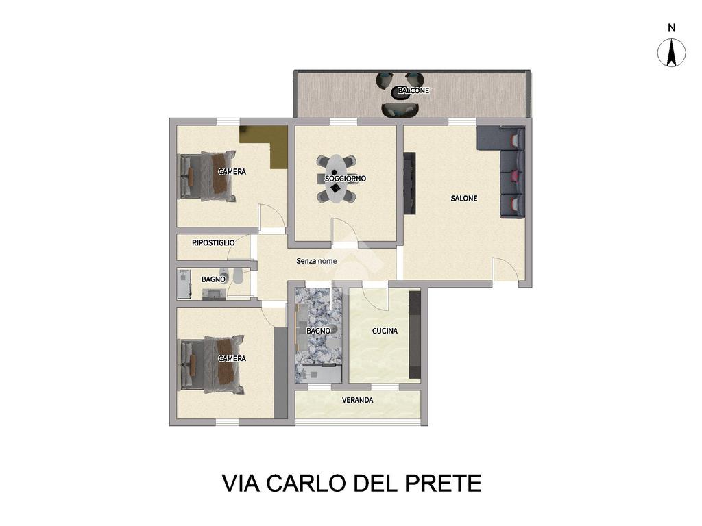 L’abitazione è composta da un accogliente soggiorno, una cucina abitabile, sala da pranzo, due ampie camere da letto e due bagni comodi e ben rifiniti. L’appartamento dispone inoltre di un ampio balcone, ideale per trascorrere momenti di relax all’aperto e godere della vista aperta sulla zona circostante. Gli spazi interni sono caratterizzati da una piacevole luminosità naturale grazie alla doppia esposizione e agli infissi in alluminio, che assicurano anche un buon isolamento termico e acustico. La pavimentazione in ceramica, uniforme in tutta la casa, conferisce praticità e un aspetto ordinato e gradevole.