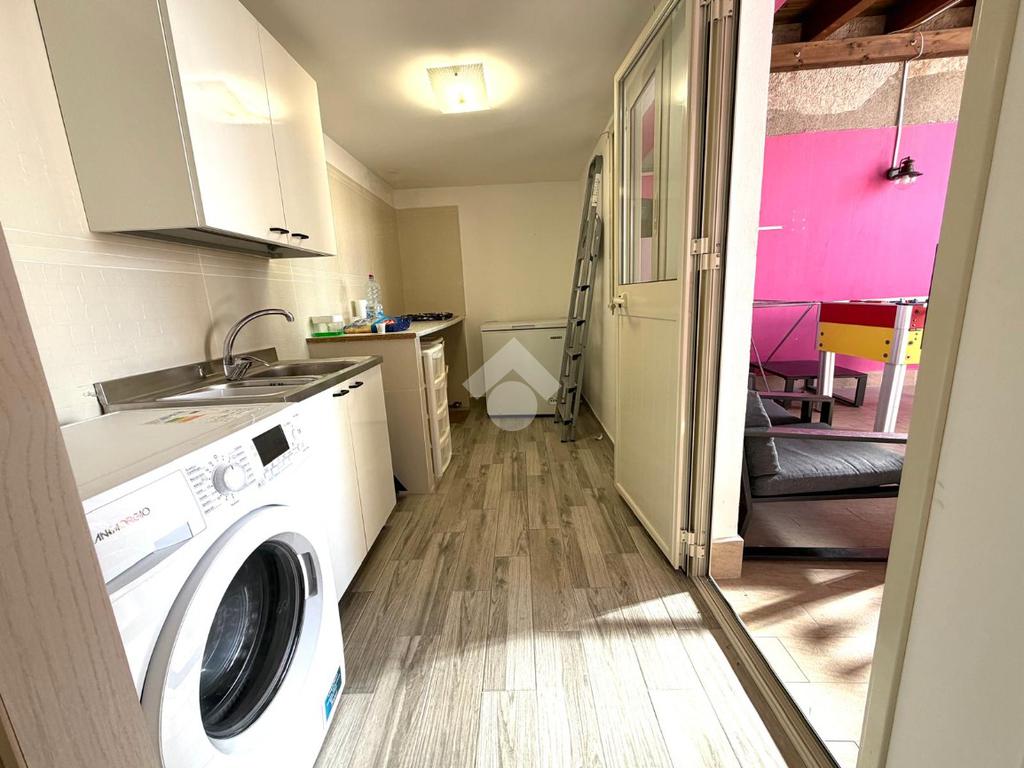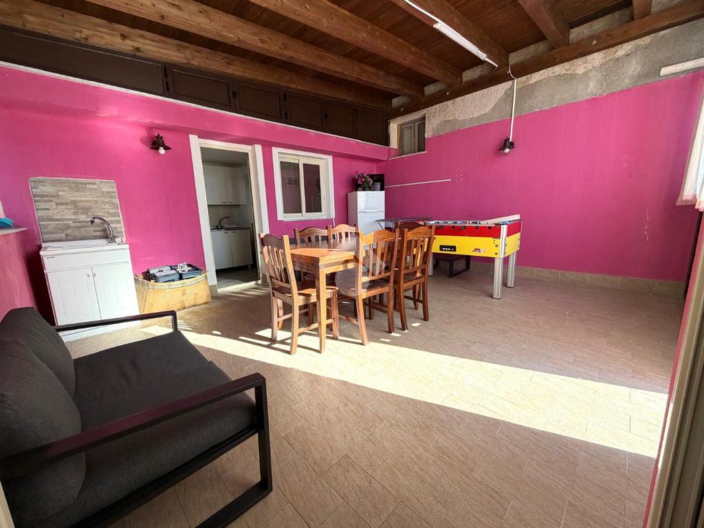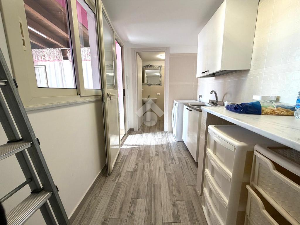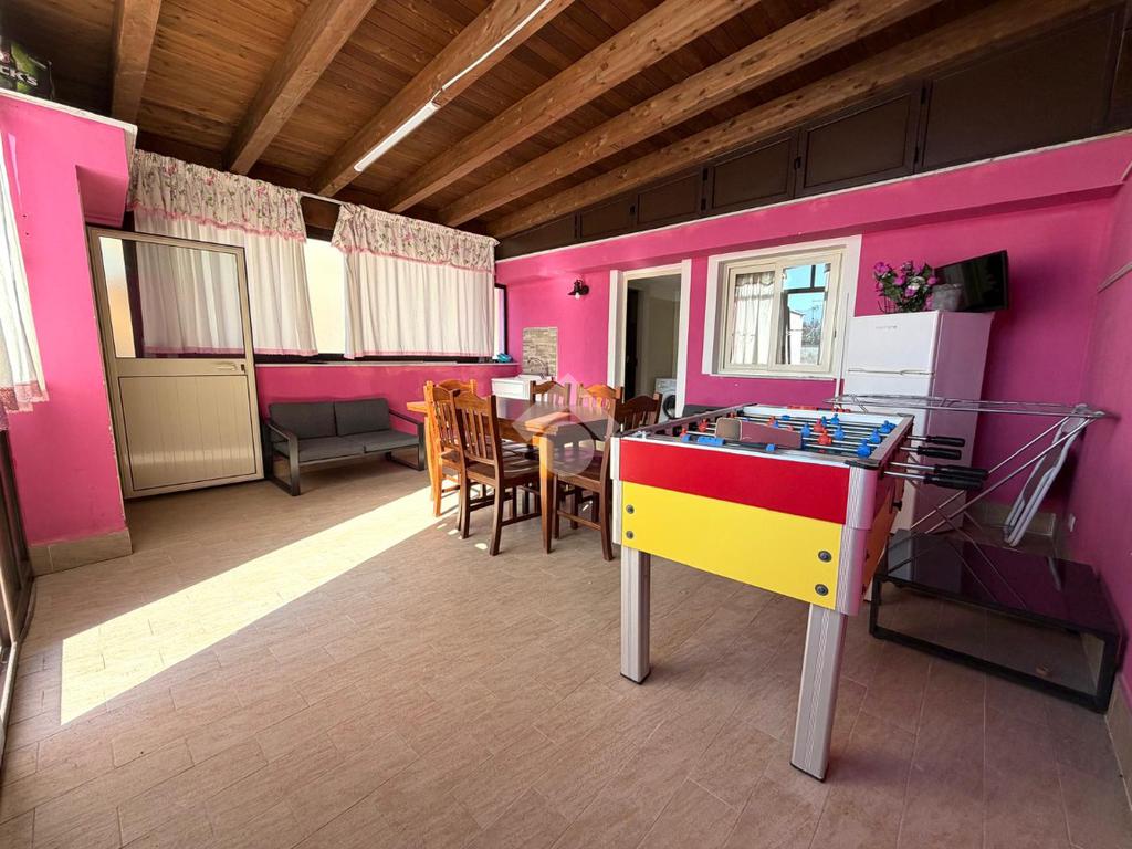 Al primo piano troviamo una spaziosa cucina soggiorno e un secondo servizio dotato di doccia.